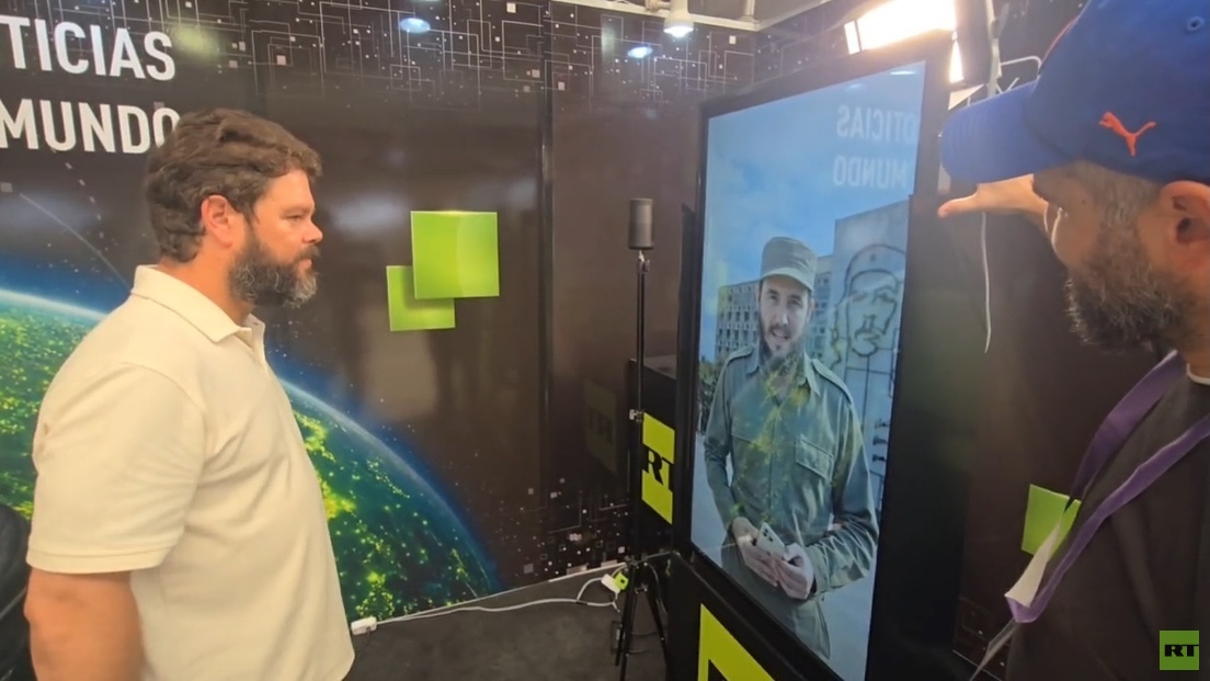 Fidel Antonio Castro Smirnov, el nieto de Fidel Castro, asistió el estand de RT en el V Coloquio Internacional Patria de Comunicación Digital e hizo un ‘selfi’ con su abuelo, usando la herramienta de IA del medio.