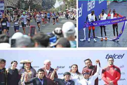 ▲ En las imágenes superiores, cientos de personas acompañaron el recorrido de los competidores y al lado el etíope Tadu…
