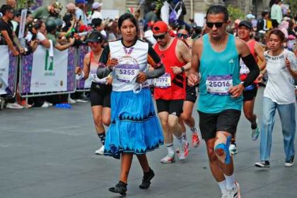 ▲ En la imagen, una competidora rarámuri desafiando al resto de los corredores.Foto Cristina Rodríguez ▲ Silverio Ramírez terminó la…