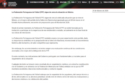 La Federación Portuguesa de Futbol (FPF) evalúa el viaje de su selección a México para disputar el 28 de marzo…