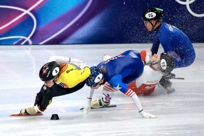 La polaca Kamila Sellier fue inmovilizada y retirada en una camilla con ruedas de la Arena de Patinaje sobre Hielo…