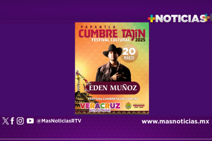 Papantla, Ver.- El cantante y compositor Edén Muñoz ha confirmado su participación en la Cumbre Tajín, donde se presentará el…