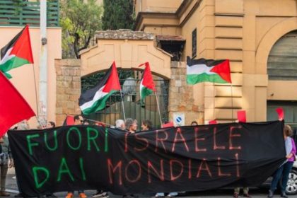 Miles de manifestantes protestan en contra de la participación de Israel en el Mundial 2026 previo al juego eliminatorio en…