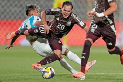 ▲ El conjunto mexicano no logró contener el juego ríspido de los argentinos, como lo muestra esta ruda entrada sobre…