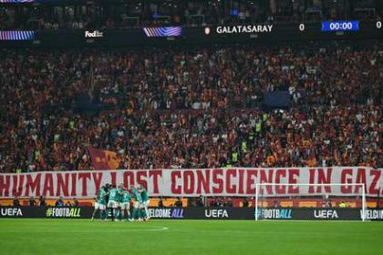 ▲ Ayer, los seguidores del Galatasaray, durante su partido de Champions contra el Liverpool, mostraron una manta con la leyenda…