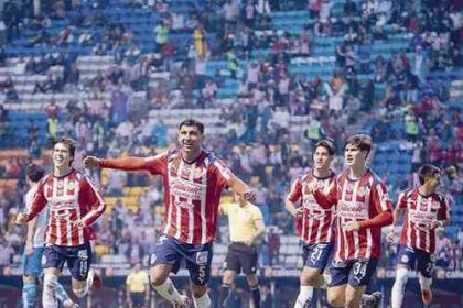 ▲ Bryan González (5) celebra con sus compañeros su golazo, un remate de media tijera, con el cual el conjunto…