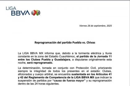 La Liga BBVA MX informó la reprogramación del encuentro entre Puebla y Chivas correspondiente a la Jornada 11 del torneo…