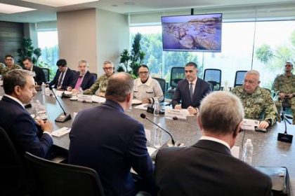 ▲ El canciller Juan Ramón de la Fuente, el almirante Raymundo Pedro Morales Ángeles, titular de la Semar; Rosa Icela…