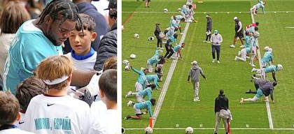 ▲ Kenneth Grant, de los Delfines, asistió a una clínica con jóvenes antes de su último entrenamiento con todo el…