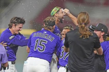 ▲ El dominicano Warming Bernabel celebra el batazo con el que su equipo rompió una racha de 10 derrotas.Foto Ap…
