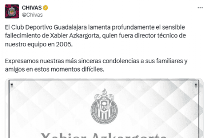 El Club Deportivo Guadalajara expresó su profundo pesar tras el fallecimiento de Xabier Azkargorta, quien fuera director técnico de Chivas…