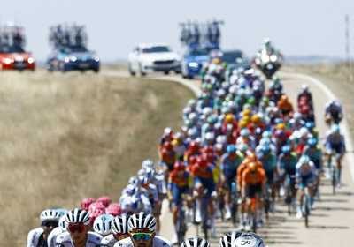▲ El ciclista mexicano Isaac del Toro (al frente a la izquierda)finalizó en el lugar 37 de la segunda etapa…