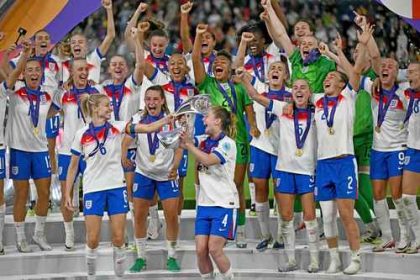 ▲ La escuadra inglesa revalidó el cetro.Foto Afp ▲ Aitana Bonmatí, a pesar de la derrota, fue elegida mejor jugadora…