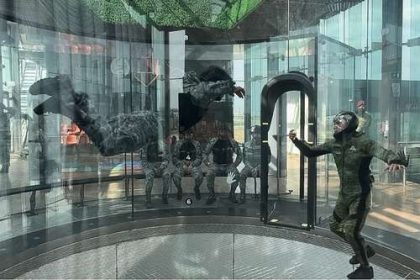 ▲ El grupo de élite se prepara en un simulador de vuelo vertical, un túnel de viento de última generación,…