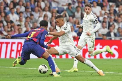▲ Con tantos de Kylian Mbappé y Jude Bellingham, el Real Madrid (de blanco) conquistó el clásico español al imponerse…