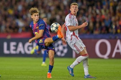 ▲ En una gran noche, Fermín López (izquierda) se convirtió ayer en el primer jugador español en marcar tres goles…