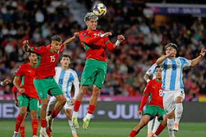 ▲ El marroquí Yassir Zabiri, quien despeja el balón, hizo el doblete de la victoria.Foto Afp De La Redacción …