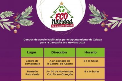 Xalapa, Ver.- Cerca de una decena de centros de acopio fueron habilitados en Xalapa para recibir los pinos de Navidad…