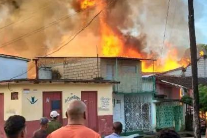 El incendio provocó una alta columna de humo. / Revolico Camajuaní La Habana/Los vecinos de Camajuaní, en Villa clara, se…