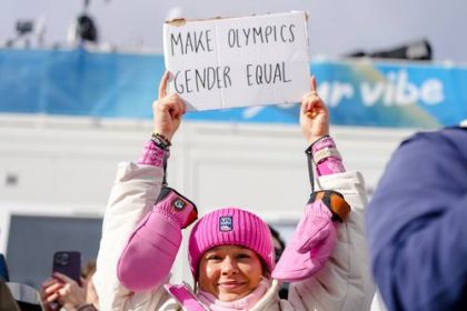 ▲ Durante la prueba en esta edición de Milán-Cortina, en la que compitió su hermano Niklas, la esquiadora estadunidense sostuvo…