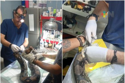 Coatzacoalcos, Ver.- Una boa de dos metros de largo fue intervenida quirúrgicamente para poder salvarle la vida en Coatzacoalcos. La…