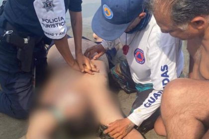 Elementos de la Policía Turística y guardavidas de Protección Civil de Boca del Río, rescataron del mar a un menor…