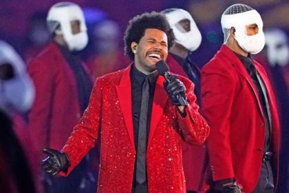 ▲ The Weeknd en el espectáculo del medio tiempo del Supertazón de la NFL entre Kansas City y Tampa Bay,…