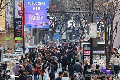 La foto de archivo, tomada el 21 de marzo de 2026, muestra a la gente en el barrio de Myeongdong,…