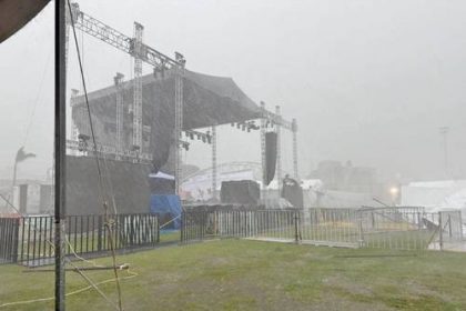 ▲ Una lona colapsó en el escenario que se montó en la Feria de San Pablo del Monte, Tlaxcala, antes…