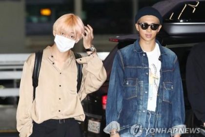 La foto de archivo, sin fechar, muestra a V (izda.) y RM, de BTS. Seúl, 10 de junio (Yonhap) --…