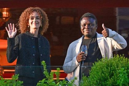 ▲ Los miembros del jurado del festival de Cannes Leïla Slimani y Dieudo Hamadi saludan a la prensa ayer en…