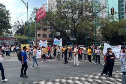 ▲ Estudiantes y docentes de las licenciatura en artes circenses contemporáneas durante el bloqueó en el cruce de avenida Insurgentes.Foto…