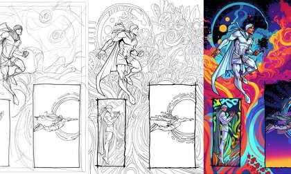 “Kalimán vuelve a nuestra época cuando un nuevo mal mundial lo impulsa a regresar” ▲ Boceto, dibujo completo a línea…