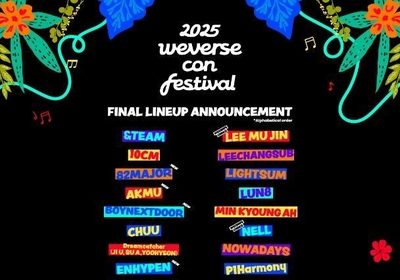 La imagen, sin fechar, proporcionada por Hybe, muestra el listado de los artistas que actuarán en el Weverse Con Festival…