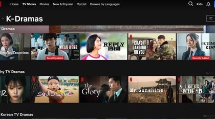 Esta captura de pantalla, sin fechar, de la página web de Netflix, muestra su sección de teleseries surcoreanas. (Prohibida su…