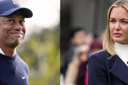 Imagen del 22 de septiembre de 2005 que muestra a Tiger Woods y su entonces esposa Elin durante un torneo…