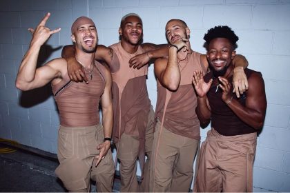 Sus bailarines con las prendas antes de un concierto. Foto cedida por A Flame El vestuario para una gira debe…