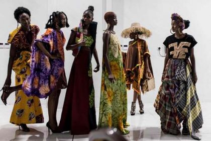 ▲ Modelos esperan para desfilar durante la Semana Internacional de la Moda de Gambia en el Centro Internacional de Conferencias…