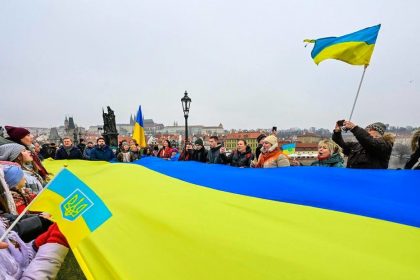 El presidente de la Cámara de Diputados de la República Checa, Tomio Okamura, cargó el domingo contra una bandera ucraniana gigantesca…