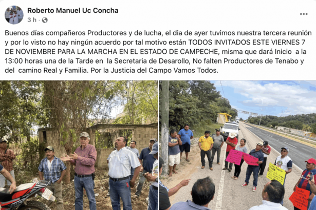 Tenabo.- Productores del estado anunciaron una marcha para este viernes 7 de noviembre en la ciudad de Campeche, luego de…