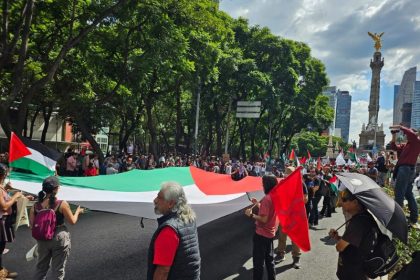 Docenas de personas marcharon pacíficamente en la Ciudad de México por Palestina recorriendo avenidas principales y exigiendo fin al conflicto…