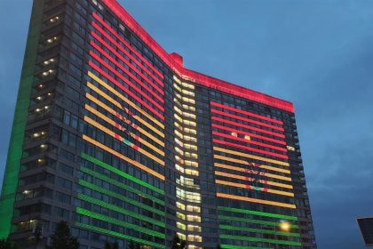 En los principales edificios de la arteria ondearon imágenes de la enseña nacional como muestra de la hermandad y respeto…