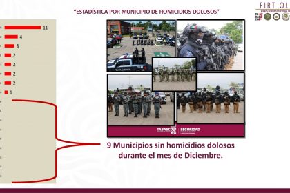 Agregó que, de acuerdo a la estadística, el número de homicidios dolosos en diciembre, para el resto de los municipios,…