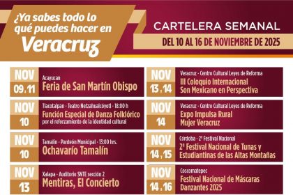 Xalapa, Ver.- Esta semana, la Secretaría de Turismo (SECTUR) invita a locales y visitantes a disfrutar una semana llena de expresiones culturales,…