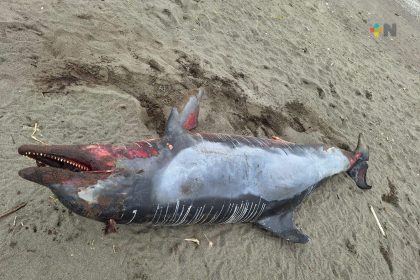 Nautla, Ver.- En playas de este municipio, pescadores localizaron varado y sin vida a un delfín nariz de botella, una…