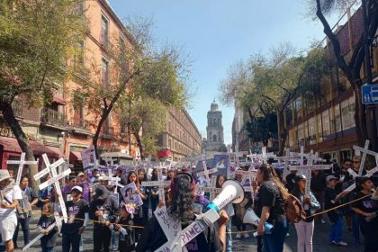 Familiares de víctimas de feminicidio y desaparición marchan este 3 de noviembre en el Zócalo de la Ciudad de México. …