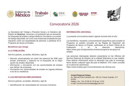 Xalapa, Ver.- La Secretaría de Trabajo, Previsión Social y Productividad (STPSP) abrió la convocatoria del Programa de Apoyo al Empleo…