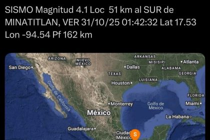 Minatitlán Ver.- Un sismo de 4.1 de magnitud se registró este viernes 31 de octubre en el municipio de Minatitlán,…