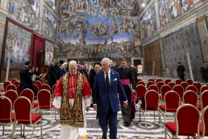 Bajo el cielo de Miguel Ángel, un saludo que une fe, historia y realeza El Papa León XIV recibe…