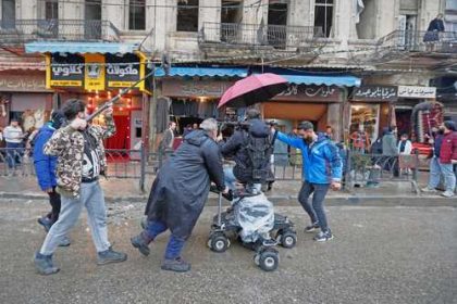 ▲ El equipo de una cadena de televisión filma un episodio de la serie Los enemigos sirios, basada en una…